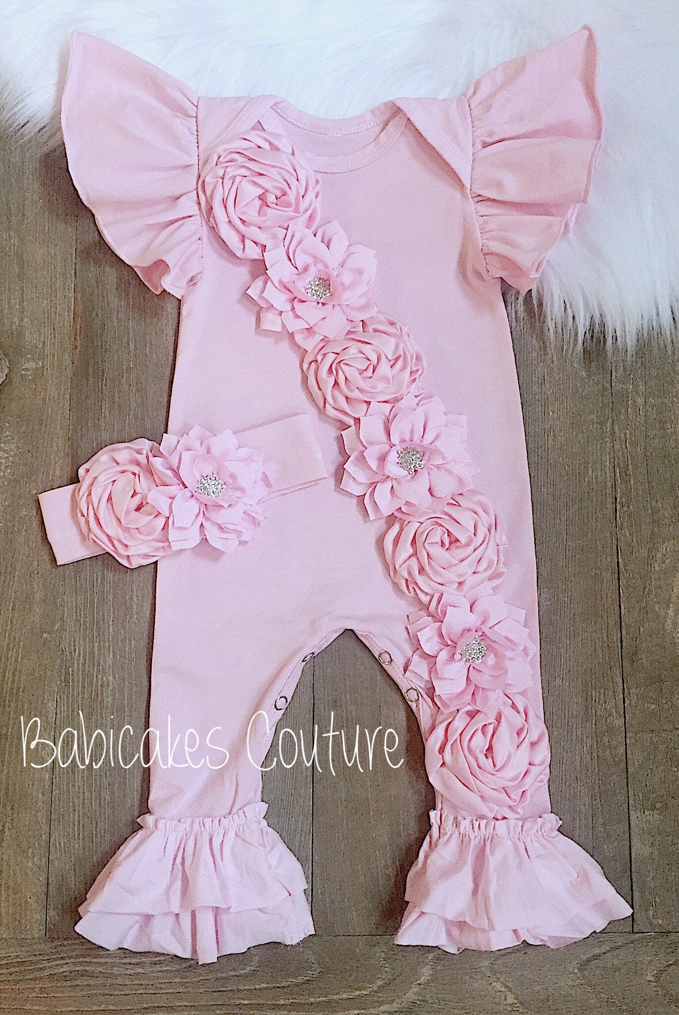 Let Babicakes Couture bring a touch of magic to your baby's special moments. This romper set is perfect for milestone celebrations, photoshoots, or any occasion where your little one deserves to shine.