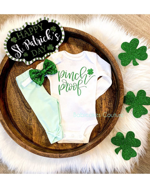 St. Patrick's Day "Pinch Proof" Baby Outfit Set – Babicakes Couture