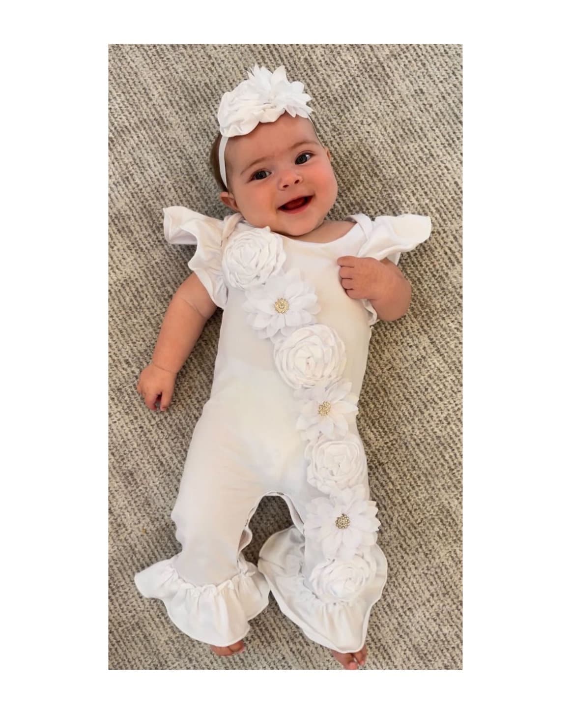 Baby Girl After Christening Outfit, Christening Ruffle Romper & Headband, Naming Outfit, Baptism Outfit, Blessing Outfit White Ruffle Romper