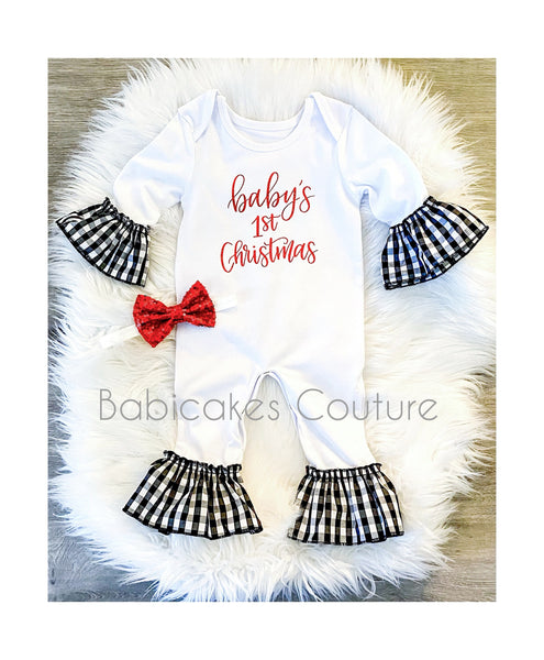 Babicakes Couture Holiday Collection – "Baby's 1st Christmas" Gingham Ruffle Romper Set