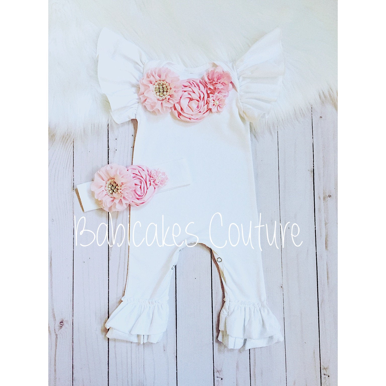 Make your baby's first outfit truly special with our "Couture Newborn Take Home Outfit." Perfect for newborn photos, baby showers, or any celebration, this beautiful ensemble adds a touch of elegance and charm to your little one's wardrobe.