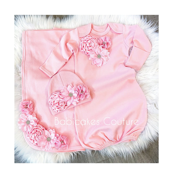 - Pink Baby Gown: Adorned with a bouquet of pink flowers, this gown is as soft as it is beautiful, providing gentle comfort for your little one.