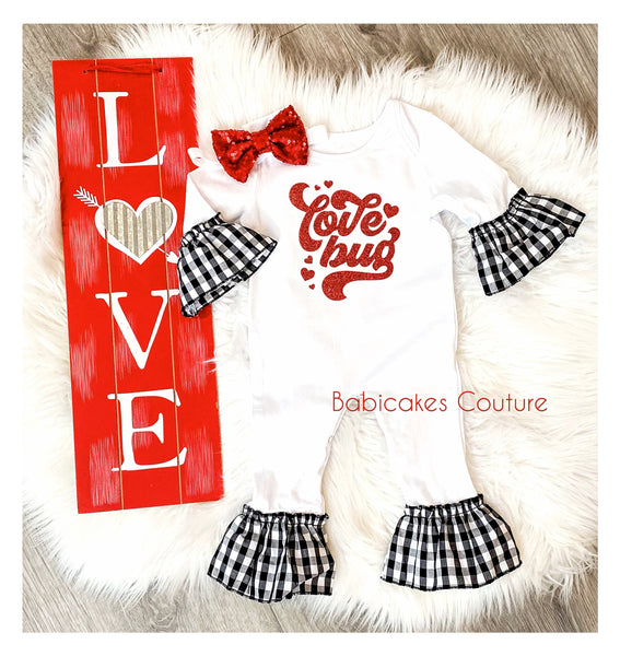 Babicakes Couture Valentine Collection – "Love Bug" Ruffle Romper Set
