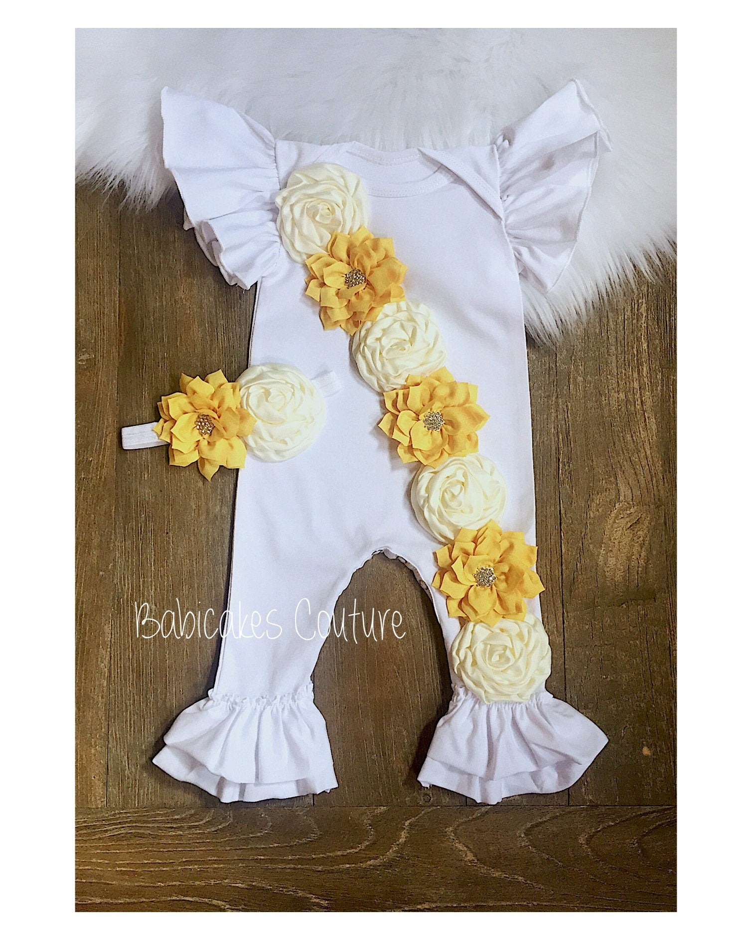 Yellow Ruffle Romper, Rani Rose Romper, Yellow Baby Romper, Baby Ruffle Romper, Newborn Coming Home Outfit, Newborn Take Home Outfit
