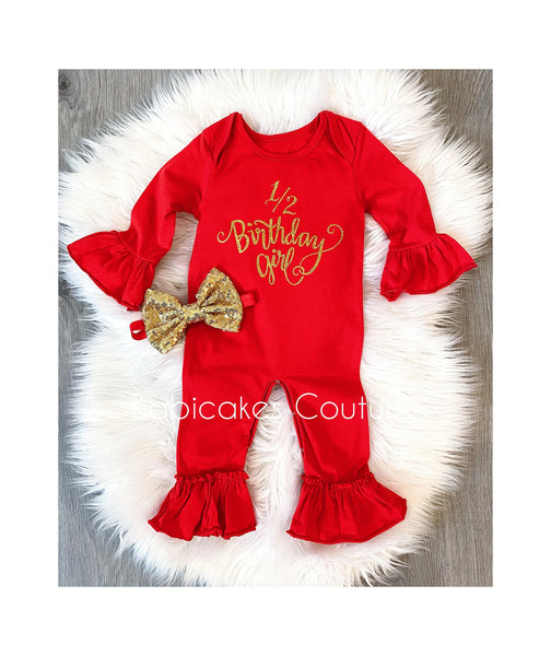 Red 1/2 Birthday Girl Ruffle Romper – Babicakes Couture