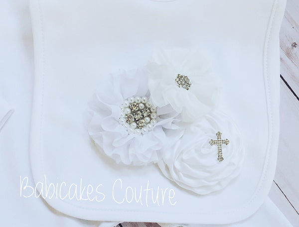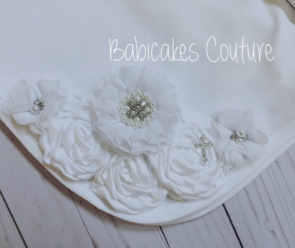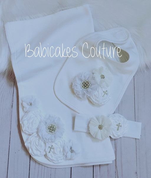 After Christening Gift Set, Baptism Outfit, Blessing / Christening Blanket, Christening Bib, Headband