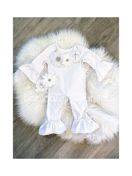 Let Babicakes Couture create unforgettable memories with this beautiful romper for your little princess!