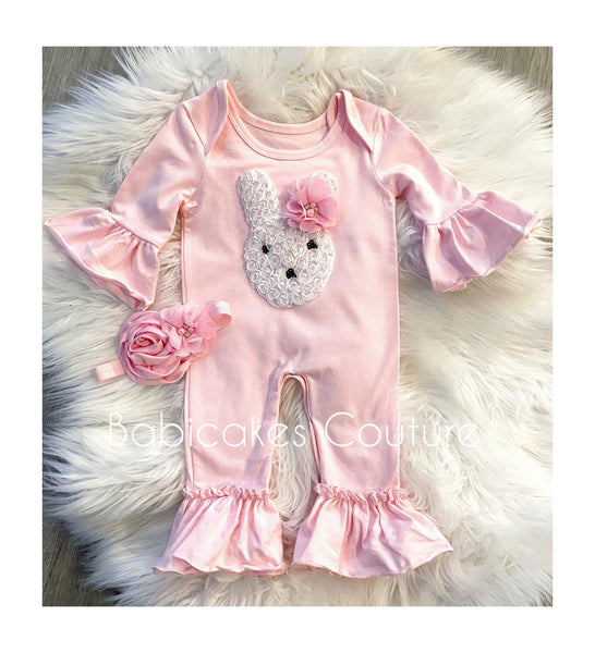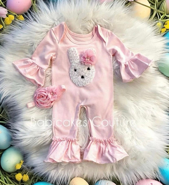 Dress your little one in our charming "Little Bunny Foo Foo" Pink Ruffle Romper, perfect for special occasions like Easter, baby showers, or memorable photoshoots. This adorable outfit adds a touch of whimsy and elegance to any celebration.