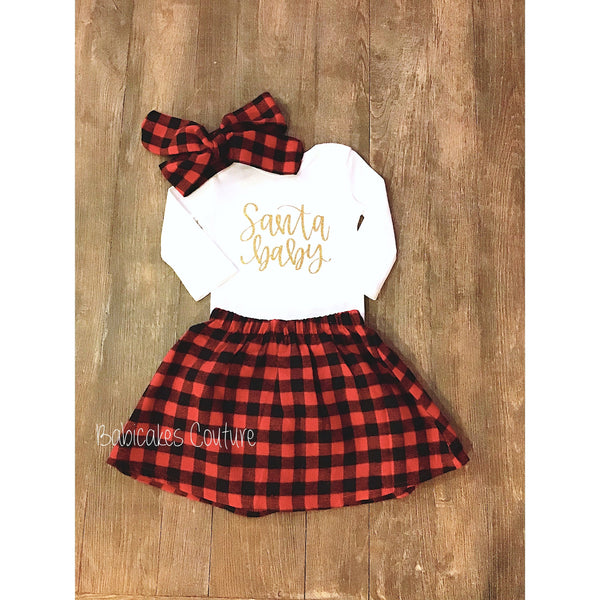 Babicakes Couture Holiday Collection – "Santa Baby" Bodysuit & Buffalo Plaid Skirt Set