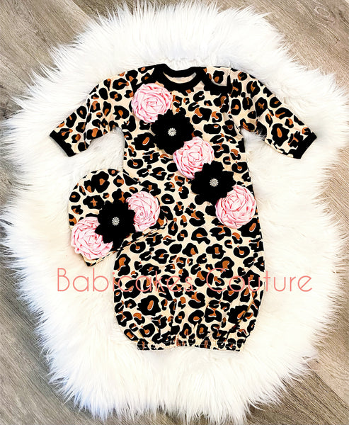 Leopard Baby Gown Set – Perfect for Baby's First Trip Home
