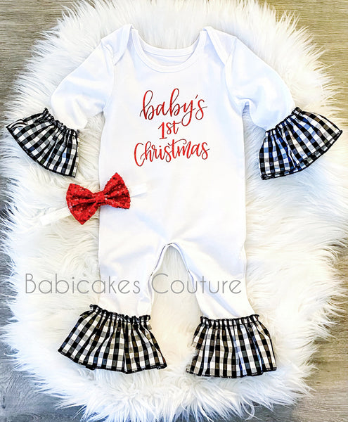 Babicakes Couture Holiday Collection – "Baby's 1st Christmas" Gingham Ruffle Romper Set