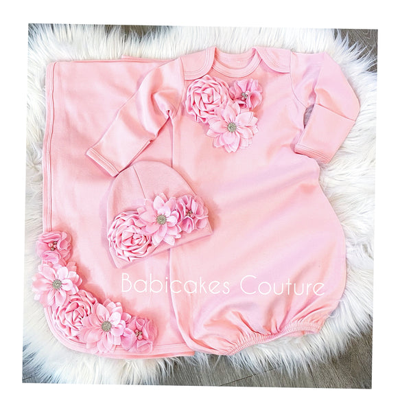 - Pink Baby Gown: Adorned with a bouquet of pink flowers, this gown is as soft as it is beautiful, providing gentle comfort for your little one.